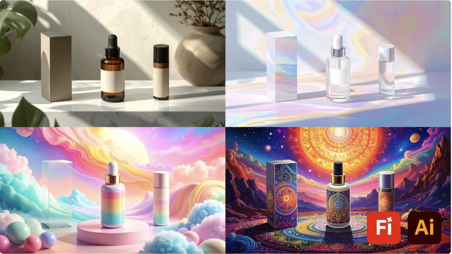 まず、生成ベクター機能を使って、手書き風のスケッチやアイデアからロゴ案を効率的に生成。次に、3D機能を活用したリアルなモックアップ作成により、立体感のあるビジュアル提案の幅を広げます。